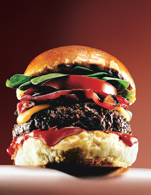 Cheddar Burger w/Balsamic Onions & Chipotle Ketchup
