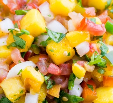 3. Dice the peaches. I liked the slightly larger dice for peaches to give them more of the center stage in this salsa. No need to peel them. You won't notice the peels and the color is prettier with the peel on. Transfer peaches to your bowl.