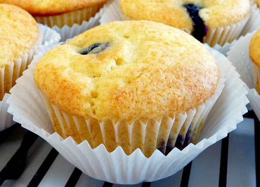 2. In the bowl of an electric mixer fitted with the paddle attachment, cream the butter and sugar until light and fluffy, about 5 minutes. With the mixer on low speed, add the eggs 1 at a time, then add the vanilla, sour cream, and milk. In a separate bowl, sift together the flour, baking powder, baking soda, and salt. With the mixer on low speed add the flour mixture to the batter and beat until just mixed. Fold in the blueberries with a spatula and be sure the batter is completely mixed.