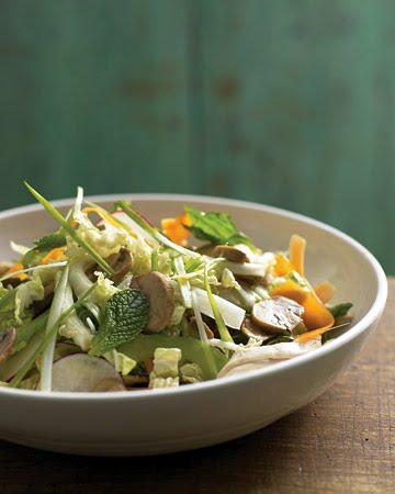 Chicken, Mushroom, and Cabbage Salad with Soy-Lemon Dressing