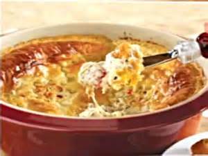 8. Place pastry circle over dip, lightly brush it with the egg and top it with cut-outs.
