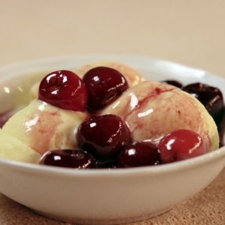 No need to book a flight to Italy for quality gelato. Mix your own creamy base at home and then top with a quick-cooking cherry companion and a sneaky tipple of rum.