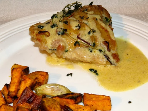 7. Turn on the broiler and put the pan under the broiler for a minute or two to crisp and brown the chicken skin. Remove from the oven and transfer to a serving platter. Garnish with the parsley