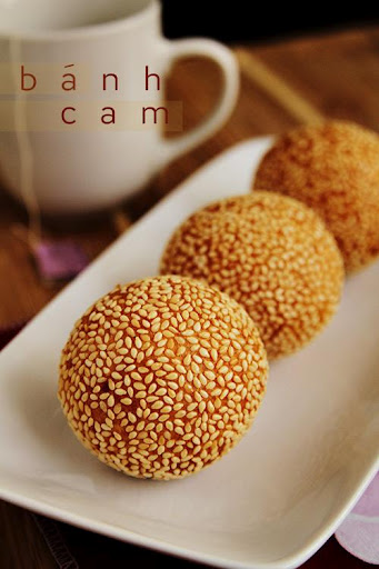 This beautiful, delectable, low key sweet treat is very common in Viet Nam. It's made of mainly sweet rice gluten wrapped around a ball of mung bean paste and coated in sesame seeds. After the deep fry, its gorgeous orange color makes you want to sink your teeth into its crunchy nutty shell.