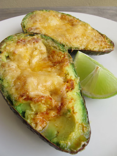3. In the cavity where the stone has been, put ¼ of the cheese on each avocado half. Place under the hot grill for 2 minutes.