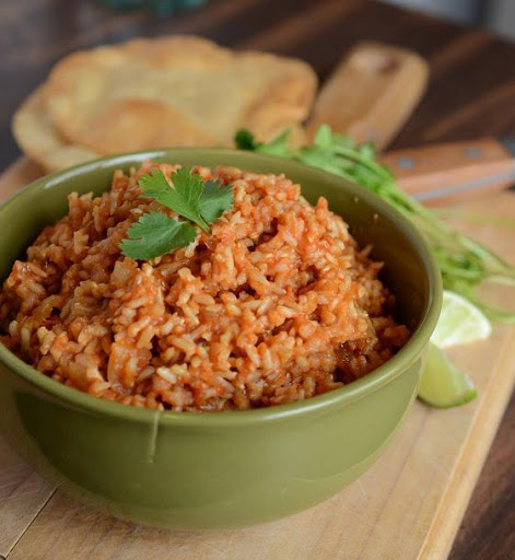 Place the rice in the bottom of the rice cooker and then add the diced tomatoes and water. Add the onion and spices and stir a little on the top to dissolve the spices in the water. Cook according to manufactures instructions. When the rice is cooked, test for salt and add more if needed.