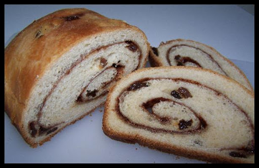 When DOUGH CYCLE ends, I removed the dough, gently punched it down and let it rest 10-15 minutes. Then I rolled it out into a big square and sprinkled 3 Tablespoons of cinnamon/sugar all over it, right to the edge. Finally I rolled it up tightly, formed it into a loaf of bread and placed it in a greased 9" bread pan. I let it rise, covered, for 30 minutes. Meanwhile, preheat oven to 350 degrees.