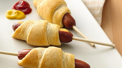 Insert 1 stick in each crescent dog.