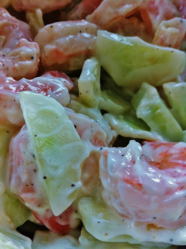 In a medium bowl, combine sour cream, mayonnaise, lime juice, Old Bay and salt. Add shrimp, celery, cucumbers and mix. Refrigerate until ready to serve.