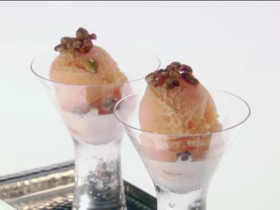 Tangerine Sorbet with Vanilla Cream and Candied Pistachios