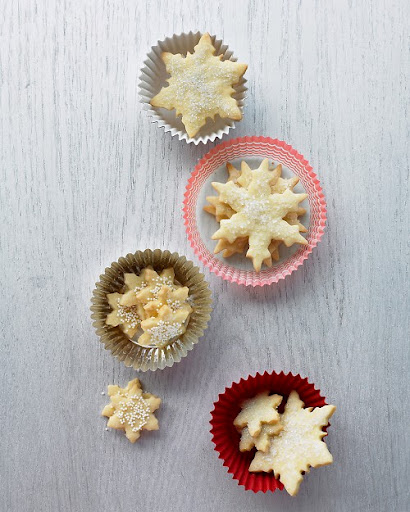 sheet of dough from refrigerator, and let stand 1 minute. Using a 3-inch snowflake shaped cookie cutter, cut out shapes. Place shapes 2 inches apart on parchment-lined baking sheets.