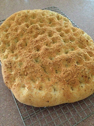 3. Bake the Focaccia in apreheated 425 degree oven for 18-20 minutes, until golden brown. Remove from oven and cool on a rack before cutting into sticks. This lightly textured, chewy bread goes wonderfully well with soups or stews.