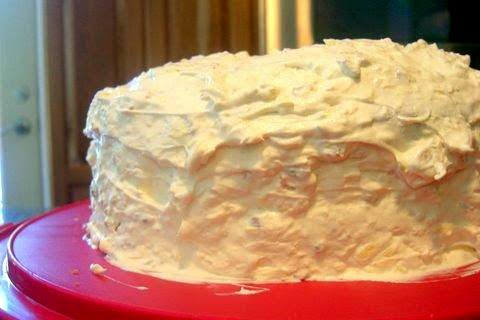 Delicious creamy pineapple frosting with 2 layers of a madarin orange cake.