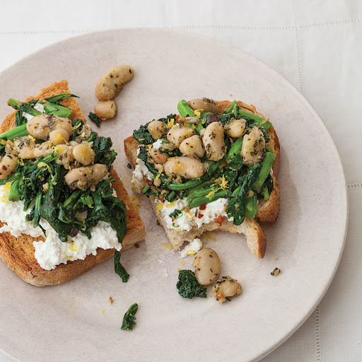 Broccoli Rabe, Cannellini Bean, and Ricotta Crostini