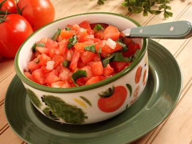Cut tomatoes in half crosswise then squeeze gently to remove juice and seeds; cut tomatoes into cubes and place in medium bowl.