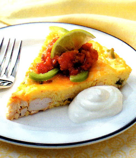 In a large ovenproof skillet, sauté the chicken, onion, green pepper, lime juice, salt, cumin and chili powder in oil until chicken juices run clear. Pour eggs over chicken mixture. Cover and cook over medium-low heat for 8-10 minutes or until eggs are nearly set. Uncover; broil 6 in. from the heat for 2-3 minutes or until eggs are set. Sprinkle with cheese. Cover and let stand for 1 minute or until cheese is melted. Serve with salsa and sour cream if desired.