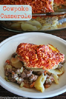 Cook potatoes in a pot of water until just tender and drain. Saute ground beef, green peppers, and onion in a skillet and drain. Combine the cheese, salt, brown sugar and tomato sauce in a bowl. Alternate potatoes with meat mixture (3 layers or so) in a 2 quart baking dish. Pour the tomato and cheese mixture over all. Bake at 350F for 30-35 minutes.