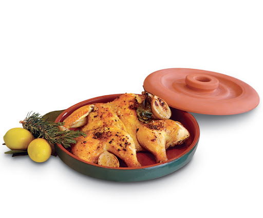 Pollo al Mattone is a classic Tuscan recipe in which a whole chicken is cooked between two pieces of heated terra-cotta. The bottom of the dish remains over the burner and the heavier top piece is used as a weight to flatten the chicken. The cooked chicken emerges from this unique cooking vessel not only flattened but crusty on the outside and juicy and delicious on the inside. We are also providing you with a recipe for cooking chicken breasts in the mattone.