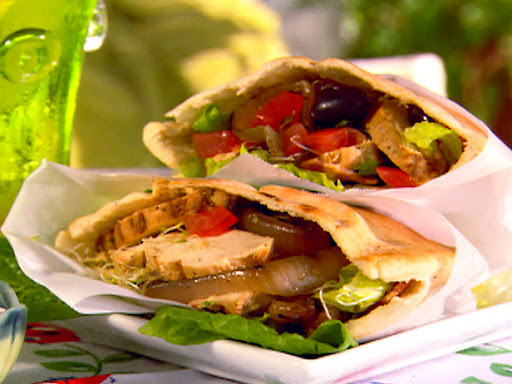 * To assemble sandwiches: Split each pita. Place several slices of grilled chicken, 3 or 4 slivers of onion, a tablespoon of tomato-feta mixture, lettuce, olives, and 1 or 2 slices of bacon into each pita. Top with yogurt sauce and salt and pepper, to taste.