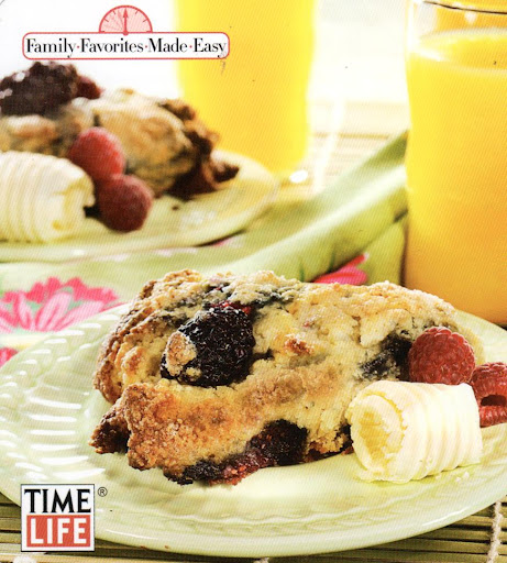 Preheat oven to 375°F. In large mixing bowl, combine flour, 1/4 cup sugar and baking powder. Dice butter into small cubes and add to flour mixture. With electric mixer on slow speed, mix until just a few pea-sized pieces of butter remain. Do not over mix. Quickly mix in buttermilk. Stir in berries by hand until dough just comes together and is moist but not sticky. Place dough onto ungreased baking sheet and, with fingers, pat into an 8-inch circle. Brush top of dough with milk and sprinkle with remaining sugar. With serrated-edge knife, cut into 8 wedges, slightly separating each with small spatula. Bake until wedges just start to turn golden brown, 25-30 minutes. Serve warm or cooled.