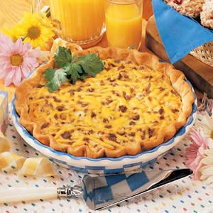 It was a pretty good start for quiche, but I would definitely make some changes next time. There was too much meat & not enough egg for me to consider it real quiche. I'll cut the meat to 1/2 a pound an increase the eggs to 4 or 5. I also used plain yogurt instead of mayonnaise since I'm not crazy about it. Also, if you used a frozen prepared pie crust, make sure it is completely thawed before you start.