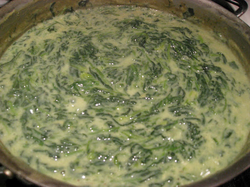3. Add spinach to white sauce, sprinkle with nutmeg, salt