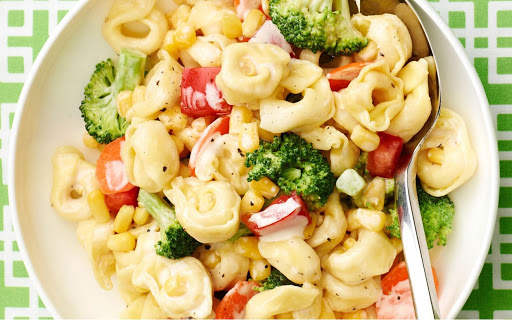4.Toss tortellini, broccoli, and corn with dressing, lemon juice, carrots, tomatoes; salt to taste.