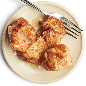 3. Punch dough down; divide into 8 equal portions. Working with one portion at a time (cover remaining dough to prevent drying), roll into an 8-inch rope. Cut each dough rope into 8 equal pieces, shaping each piece into a 1-inch ball. Dip each ball in milk mixture, turning to coat, and roll in sugar mixture. Layer balls in a 12-cup Bundt pan coated with cooking spray. Repeat procedure with remaining 7 dough ropes. Sprinkle any remaining sugar mixture over dough. Cover and let rise in a warm place (85°), free from drafts, 1 hour or until almost doubled in size.
