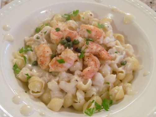 3. Heat thoroughly, stirring occasionally. Serve over hot, cooked shell pasta. Garnish with parsley.