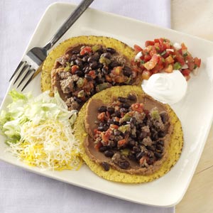- Optional toppings: shredded lettuce, shredded reduced-fat Mexican cheese blend, sour cream and/or salsa
