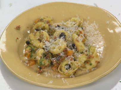For the tortellini and tomato-arugula dressing: Cook the tortellini to al dente according to the package directions. Drain and let cool.
