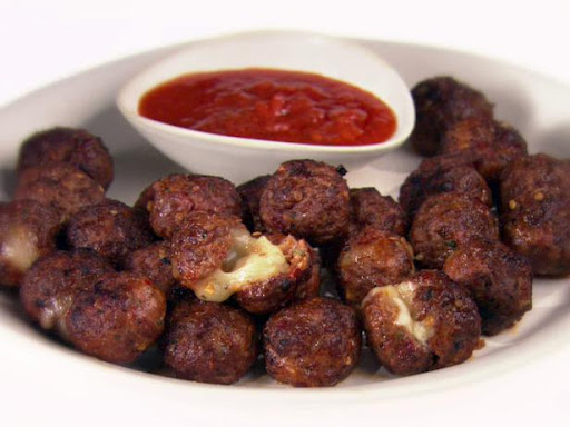 Insert 1 cube smoked mozzarella cheese into the center of each meatball and form the meat around it, completely enclosing the cheese.