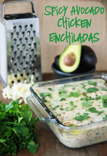 Spray/grease a 9×13 baking dish. Add 3/4 cup sauce to the bottom of the pan. Add chicken, Cabot Monterrey Jack Cheese, onion and avocado to the center of each tortilla and roll, placing seam-side down in the dish. Pour the remaining sauce over the enchiladas. Top with leftover cheese and bake for 15-20 minutes or until bubbling. Serve immediately.