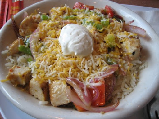 2. Place 1/2 cup of hot rice in each bowl and top with 1/2 cup of the fajita mixture. Sprinkle with shredded cheese. Add toppings of choice. Serve.