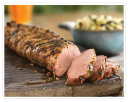 Lightly oil cooking grate. Remove pork from marinade, drain briefly, but do not scrape off solids. Place on grill and cover grill. Cook, turning occasionally, until browned and instant-read thermometer inserted in center of pork reads 145 degrees Fahrenheit, about 20-27 minutes. Transfer to carving board and let stand 3-5 minutes. Cut on slight diagonal and serve.