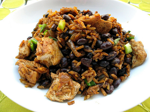 Sprinkle the green onions and test a kernel of rice. It should have no more than a hint of chalkiness at in the center, in which case you place the cover back on, remove it from the heat and let it stand 5-10 minutes. If it’s not cooked, cook for another 5 minutes or so.