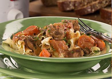 Cover and cook on HIGH setting 4-1/2 to 5 hours hours or on LOW setting 8 to 9 hours, or until beef is fork-tender. Remove and discard bay leaf. Stir in sour cream. Serve over noodles or rice.