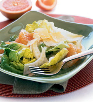 Add endive, butter lettuce, and fennel to bowl; toss to coat. Top salad with grapefruit sections, then Parmesan cheese, and serve.