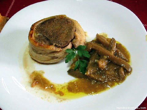 - Sirve los solomillos emplatados acompañados con las setas. Adorna con unas hojas de perejil