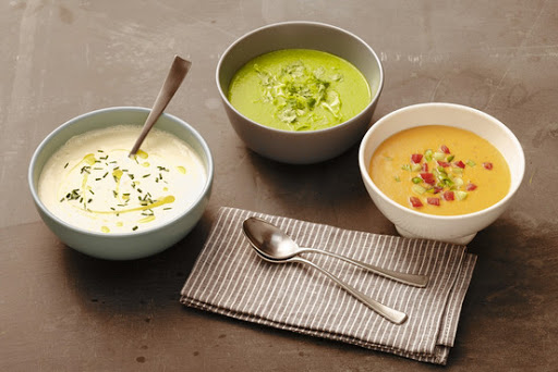 Serve gazpacho in chilled bowls. Garnish with julienned cilantro or parsley and/or finely diced green pepper or cucumber.