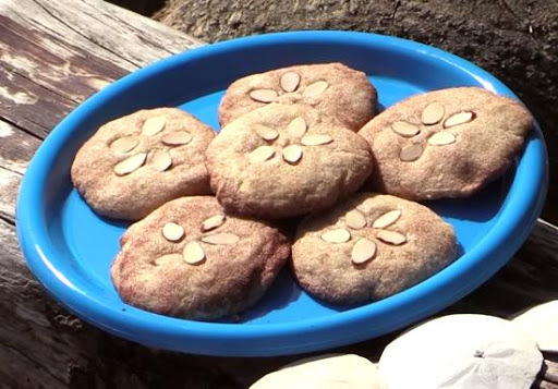 • Take a couple of tablespoons of cookie batter and roll into a ball. Press the ball between the palms of your hands to flatten it to be about the size of a sand dollar (3"-4" round).