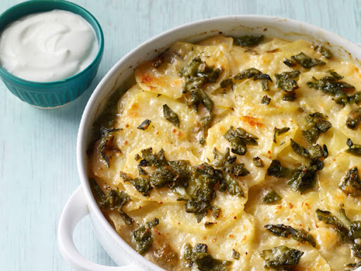 - 2 pounds Yukon Gold potatoes, peeled and sliced 1/8 inch thick