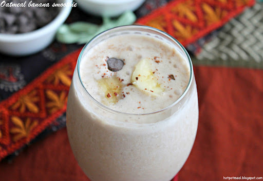 Mix oatmeal, milk, Nesquik, cinnamon in a bowl and refrigerate it over night. At the time of breakfast beat the oat mixture and banana in the blender to a smooth paste. If it is too thick, add more milk.