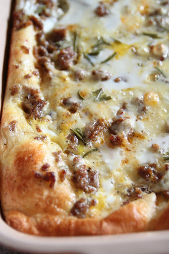 Spread the sausage over the dough.