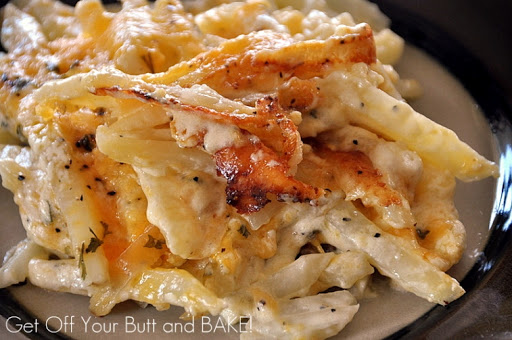 Pour all of the cream over the top of the fries. Salt and pepper them generously. Sprinkle at least 2 cups grated Cheddar Cheese over the top. Sprinkle Parsley flakes on top of the cheese. Cover with foil, and poke a fork through the top of the foil, 2 or 3 times to allow a little steam to escape. This way, your cream doesn’t boil over into your oven!
