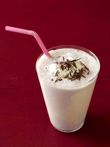 Rinse out the blender and blend the remaining ice cream, the grape juice and jelly until smooth. Pour equal parts of the peanut butter and jelly mixtures into chilled glasses. Top with whipped cream and/or shaved chocolate, if desired.