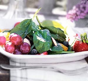 Onion and poppy seeds flavor this creamy salad dressing, which goes on fresh spinach-and-fruit salad at My Just Desserts restaurant in Alton, Illinois. Try it on cut-up cantaloupe, watermelon and blueberries.