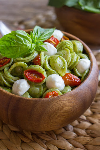 Add the freshly made pesto to your pasta and stir to coat. If the pesto is too thick for your liking, you can thin it out a bit with the reserved pasta water, adding a little at a time.