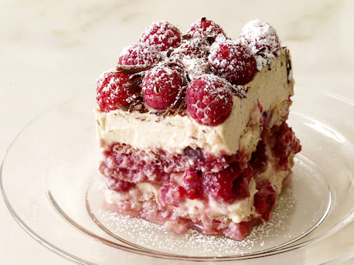 Uncover the tiramisu and top with the remaining 2 cups raspberries and shaved chocolate. Dust with confectioners' sugar.