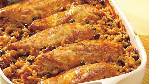 Arrange chicken, skin side up, over rice mixture. Cover tightly with foil.